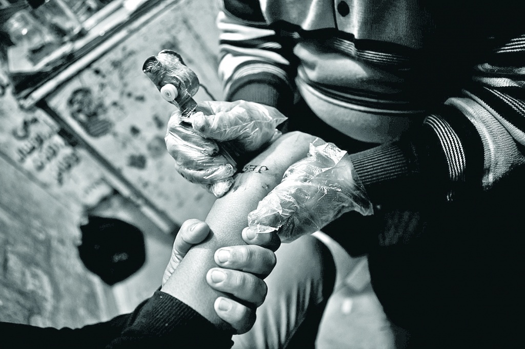 Татуировщик набивает надпись «Иисус» на руке христианина-копта
