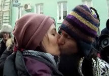 19 декабря у Госдумы прошла первая акция серии "День поцелуев". Она была направлена против гомофобного закона, который нижняя палата планировала в тот день принять в первом чтении. Были задержаны семь участников акции, а также трое гомофобов, в том числе православный провокатор Дмитрий Цорионов (Энтео), которые кидались в активистов яйцами и дрались. Всех 10 задержанных оставили на ночь в ОП "Мещанский", протоколы на них переписывались восемь раз. Инициатора акции, журналистку "Новой газеты" Елену Костюченко, ночью освободили по звонку "сверху". Остальные вышли на другой день после обеда с 500-рублевыми штрафами по статье 20.1.