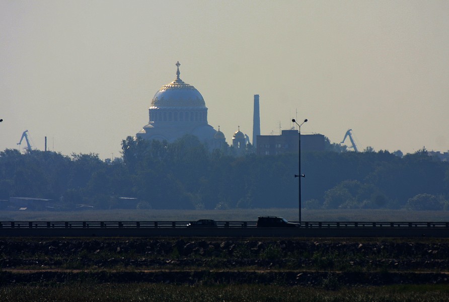 С одной стороны виден Кронштадт с куполом Морского собора, который РПЦ перекрасила и переобустраивает для своих нужд.