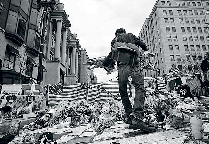 Цветы на бостонской Boylston Street в память о жертвах теракта 15 апреля