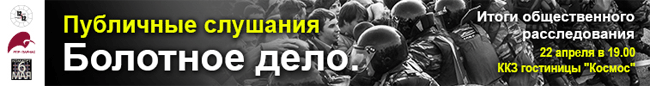 22 апреля в 19 часов в Москве в гостинице "Космос" пройдут публичные слушания "Болотное дело. Итоги общественного расследования". Слушания проводят "Круглый стол 12 декабря", РПР-ПАРНАС и "Комитет 6 мая".