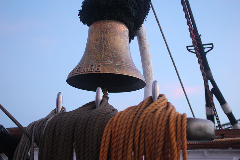В 60-70-е судно долго стояло на восстановительном ремонте в Кронштадте. Решался вопрос, оставить его или порезать на иголки. Сто капитанов дальнего плавания и профессоров мореходных училищ написали письмо в ЦК партии о том, чтобы его сохранить. Но пока все это решалось, судно, по сути дела, разбандарили. Не то что колокол, фок-рею потеряли где-то в переходах с одной стоянки на другую. У нас фок-рея новая, ее в те времена изготовили по образцу. И, естественно, колокол тоже куда-то исчез. На кронштадтском заводе много военных судов стояло, и какие-то детали оттуда, с военных судов, которые списывали, приобретали. Но колокол не могли приобрести и решили стащить. Был такой старший боцман Якубович, он присмотрел колокол с пожарной каланчи на морском заводе. Колокол этот был церковный. Выбрали они выходной день и начали снимать колокол. Проходит директор завода, и сразу же вопрос: "Что вы здесь делаете?" А боцман такой острый на язык был, находчивый, он говорит: "Да начальник цеха приказал колокол снять, вот снимаем в выходной день, а он платить не хочет". А для любого директора завода вопрос оплаты — это проблемный вопрос. Он: "Снимайте, снимайте, все заплатит". И быстро ушел от разговора. Не успел директор уйти — начальник цеха идет: "Что вы делаете?" — "Да директор завода приказал колокол снимать. Вот снимаем..." — "Снимайте, снимайте". Так колокол сняли. Если посмотреть на него, у него чисто церковная обводка. Там, как говорят, была вязь еще, надпись церковная, ее на токарном станке спилили. Голос у колокола был очень красивый, а потом, когда просверлили и надпись "Седов" прибили, то есть нарушили конструктивно сверлением колокол, немножко изменился голос не в лучшую сторону. А так — церковный колокол на носу судна.
