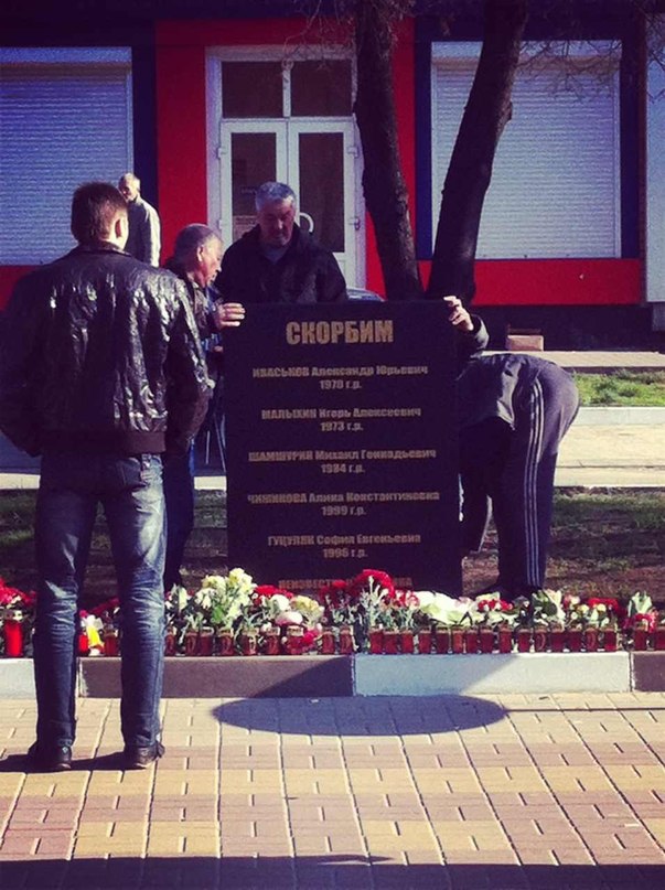 Горожане с вечера пиносят цветы и свечи к месту трагедии.