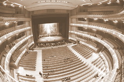 На третьей галерее действительно хорошо видно и слышно. Зал – огромный, подковообразный. Рассчитан на две тысячи зрителей. Кресла итальянские, обивка датская.