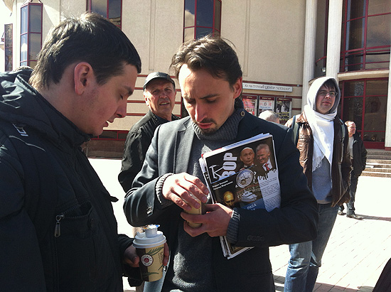 Владимир из Самары, 27 лет. Последнее время живет в Питере, по специальности программист, временно не работает. Я помню его еще с ночи накануне заседания 17 апреля, когда составлялись списки на проход в суд. С тех пор он в Кирове — ночевал сначала в штабе, потом у новых друзей. Приехал лично как человек поддержать Навального, потому что тот "довольно смелый". Признается, что в его окружении никто Навальным особо не интересуется, может и в курсе, кто он такой, но не более того: "В Самаре в принципе тухло с политической активностью".