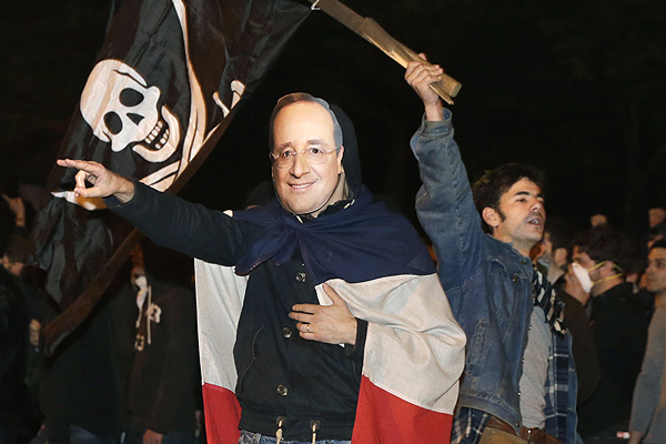 Противник однополых браков в маске сторонника — президента Франции Франсуа Олланда. Фото: Reuters