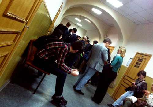 Все вышли в коридор — судья пошла в совещательную комнату. Из зала вывели Гаскарова, его приветствовали аплодисментами.