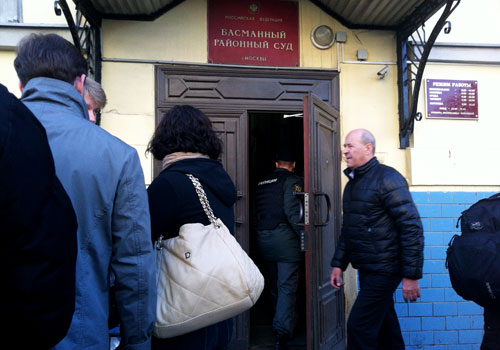 После Ленинского суда Кирова Басманный суд поражает хамством: "Видеосъемка запрещена! Вы пишущий, вот и пишите, а фотоаппарат уберите!" — это девушка-пристав.