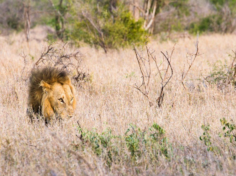 Долгое время считалось, что когда дело доходит до охоты, самцы львов зависят от самок. Однако новые данные показывают, что самцы и сами по себе отличные охотники. Новый отчёт исследователей Скотта Лори (Scott R. Loarie) и Грегори Эснера (Gregory P. Asner) из Института Карнеги доказывает, что львы широко используют густую растительность африканской саванны для устройства засад. Работа опубликована в известном научном журнале Animal Behavior.