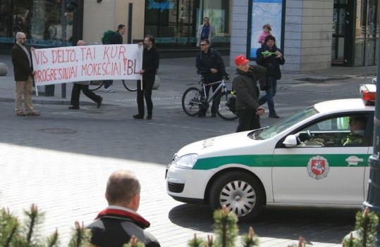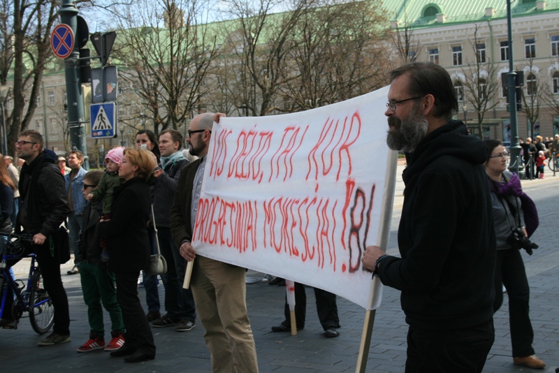 Некоторые жители Вильнюса пришли на шествие с плакатами, напомнили соцдемам о предвыборных обещаниях и потребовали их выполнения.