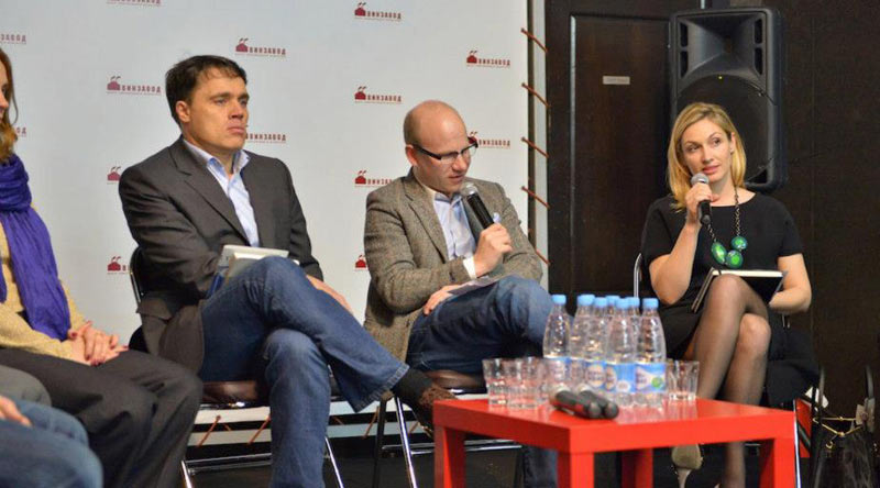 Круглый стол «Искусство и власть: формы взаимодействия» в рамках программы ВИНЗАВОД ПРОСВЕТ был организован по инициативе галериста Марины Печерской, сделавшей выставку «Госзаказ» - проекты произведений искусства в общественных пространствах.