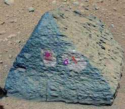 Первый камень - Джек Матиевич - исследованный «Кьюриосити» с помощью рентгеновского спектрометра, напоминает полевой шпат — в нём много калия и натрия, и мало магния и железа. Очень похоже, что это — кометный метеорит, так как его химический состав весьма характерен для большинства исследованных кометных осколков Однако теперь уже имеются результаты первичных исследований кометных метеоритов и даже составлена их классификация, поэтому несложно будет проводить сравнительный анализ, тем более что в некоторых образцах обнаружены включения самородных металлов – индикаторов космического вещества, а другие метеориты вообще не имеют аналогов среди земных пород. Что касается Тунгусских кометных метеоритов, то согласно проведенным исследованиям, их состав оказался чрезвычайно близок к составу бутылочным и оконным стеклам. На сегодняшний день к Тунгусским кометным метеоритам по прямым и косвенным признакам можно отнести стекло Кулика, стекла полностью прозрачные, голубоватого и зеленоватого окраса с высоким содержанием натрия, а также шлакопемзы с высоким содержанием калия и кальция.