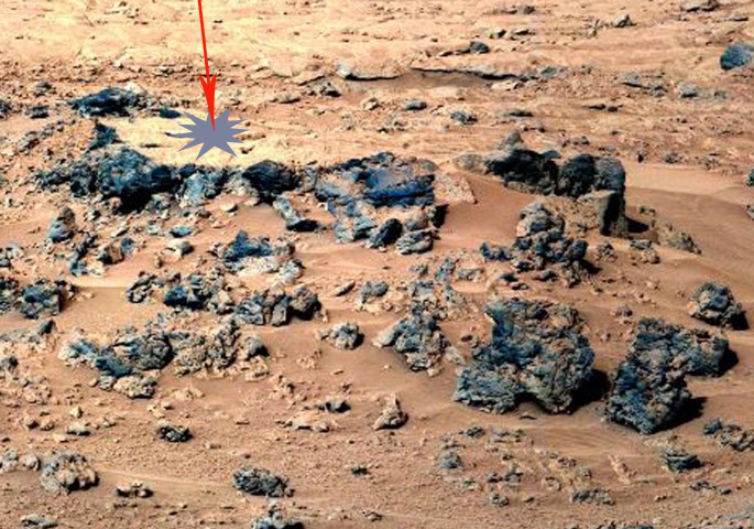 Вполне возможно, на снимке, сделанном Кьюриосити, мы видим результат падения метеорита, причем его разлетевшиеся обломки по внешним признакам имеют большую схожесть с кометными метеоритами. Очень жаль, что не был исследован состав обломков. И вот сейчас наступает момент истины, любая находка Кьюриосити должна рассматриваться через призму кометной метеоритики, так как находка может принадлежать как Марсу, так и кометным метеоритам. Ее принадлежность к классическим метеоритам решается просто, благодаря их хорошей изученности. Сложность проблемы с идентификацией кометных метеоритов состоит в том, что они схожи с составом земной коры, и велик соблазн причислить их к марсианским породам.