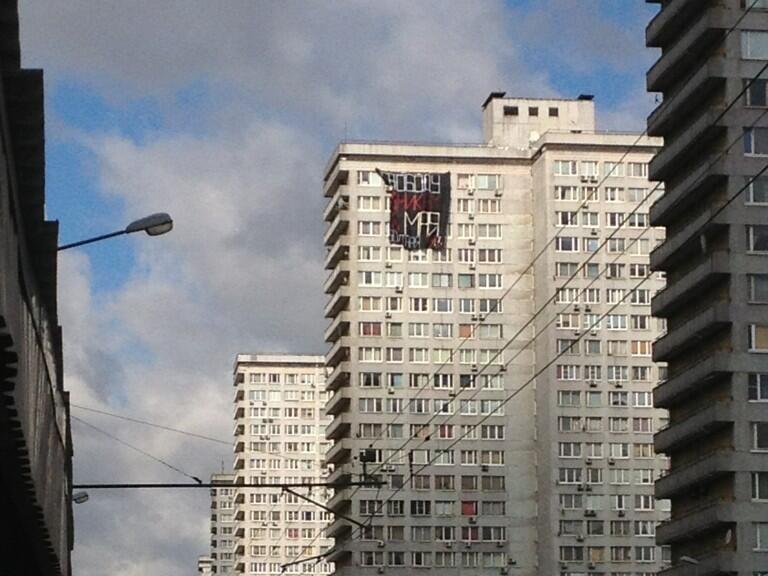 Недовольный житель последнего этажа высотного дома на Новом Арбате пылесосом засосал баннер с требованием освободить арестованных по «болотному делу», написал в твиттере активист Сева Чагаев.