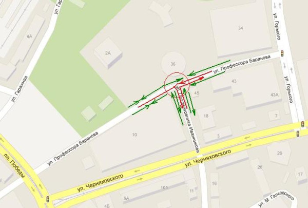 (*примечание. Со стороны п.Победы выезд из паркинга невозможен. Тут должно быть движение только на въезд в паркинг).