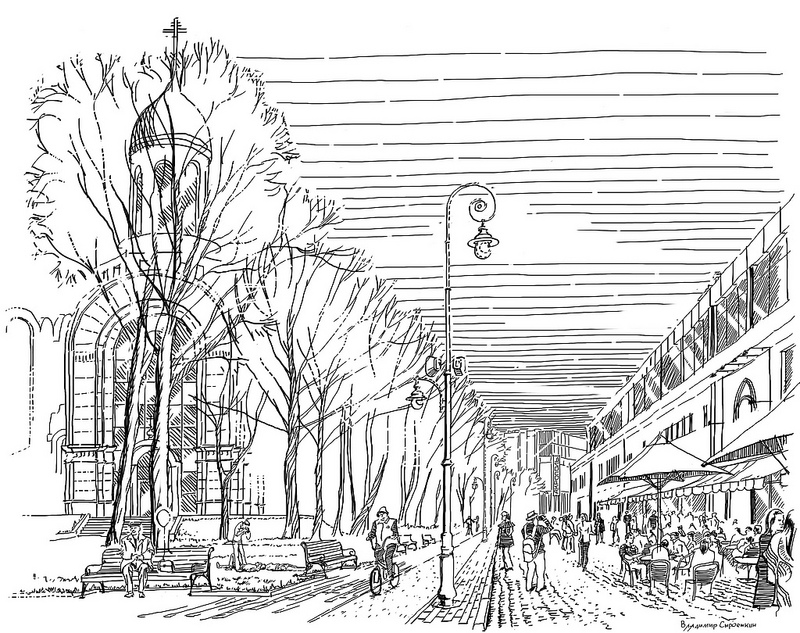 Все это есть в европейских городах. Подобные улицы уже стали появляться даже в Москве. Нам же остается только помечать о том, как могли бы быть преобразованы наши улицы: