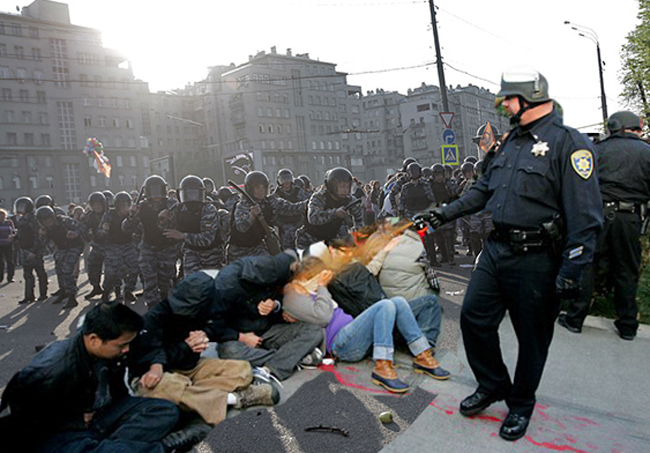 Полиция на мирных митингах и шествиях должна обеспечивать безопасность участников. При этом конфликты во время этих шествий случаются часто. Во всех странах мира — и там, где имеются давние демократические традиции, и там, где эти традиции слабы. Жесткость действий полиции бывает оправданной. А иногда — чрезмерной.