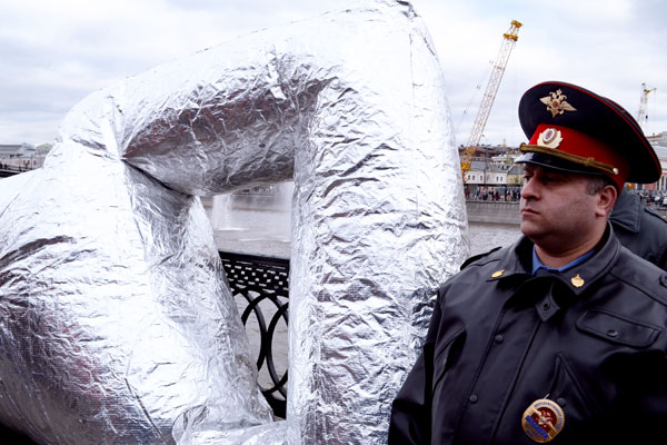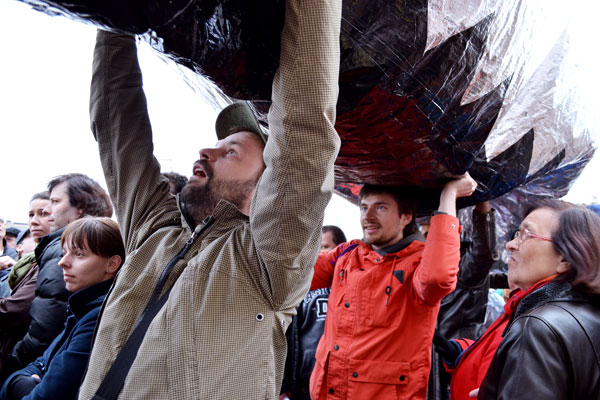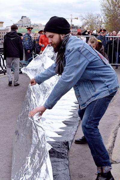 6 мая самого Ван Балена в Москве уже не было, так что скульптуру запускали его соратники — активисты из движения "Партизанинг".
