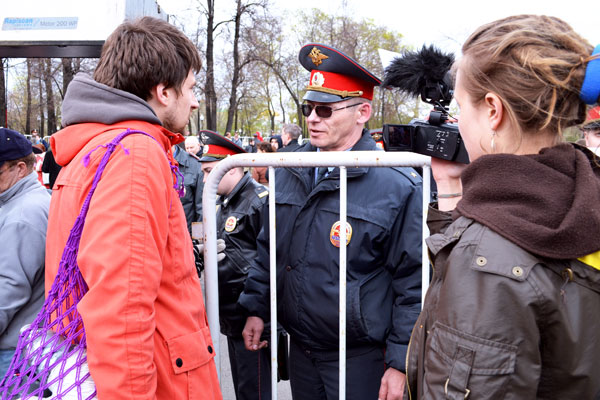 Уже у самого входа на митинг активистов поджидали суровые полицейские, которые сразу же начали мотать головой и объяснять, что акцию надо было заранее согласовывать непосредственно с организаторами.