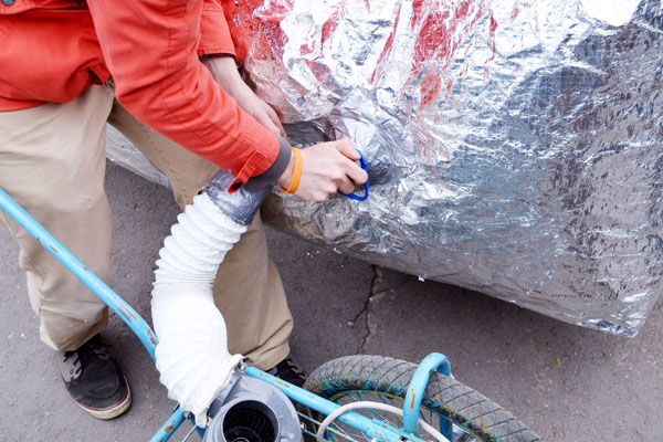 За процессом надувания пилы с интересом наблюдали и прохожие. Сперва никто не мог понять, что из этого может получиться — то ли серебряная гусеница, то ли фаллический символ...