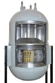 Одна из самых важных и дорогих частей спектрометра — магнит, создающий постоянное магнитное поле. Чем сильнее поле, тем выше чувствительность и спектральное разрешение, поэтому ученые и инженеры постоянно пытаются получить как можно более высокие поля. Магнитное поле создается электрическим током в соленоиде — чем сильнее ток, тем больше поле. Однако бесконечно увеличивать силу тока нельзя, при очень большом токе провод соленоида просто начнет плавиться. Поэтому уже очень давно для высокопольных ЯМР-спектрометров используются сверхпроводящие магниты, т.е. магниты, в которых провод соленоида находится в сверхпроводящем состоянии. В этом случае электрическое сопротивление провода равно нулю,и выделения энергии не происходит при любой величине тока. Сверхпроводящее состояние можно получить только при очень низких температурах, всего нескольких градусов Кельвина, — это температура жидкого гелия. (Высокотемпературная сверхпроводимость — до сих пор удел только чисто фундаментальных исследований.) Именно с поддержанием такой низкой температуры и связаны все технические сложности конструирования и производства магнитов, которые обуславливают их дороговизну. Сверхпроводящий магнит построен по принципу термоса-матрешки. Соленоид находится в центре, в вакуумной камере. Его окружает оболочка, в которой находится жидкий гелий. Эта оболочка через вакуумную прослойку окружена оболочкой из жидкого азота. Температура жидкого азота — минус 196 градусов по Цельсию, азот нужен для того, чтобы гелий испарялся как можно медленнее. Наконец, азотная оболочка изолируется от комнатной температуры внешней вакуумной прослойкой. Такая система способна сохранять нужную температуру сверхпроводящего магнита очень долго, хотя для этого нужно регулярно подливать в магнит жидкие азот и гелий. Преимущество таких магнитов кроме возможности получать высокие магнитные поля также и в том, что они не потребляют энергии: после запуска магнита ток бегает по сверхпроводящим проводам практически без каких-либо потерь в течение многих лет.