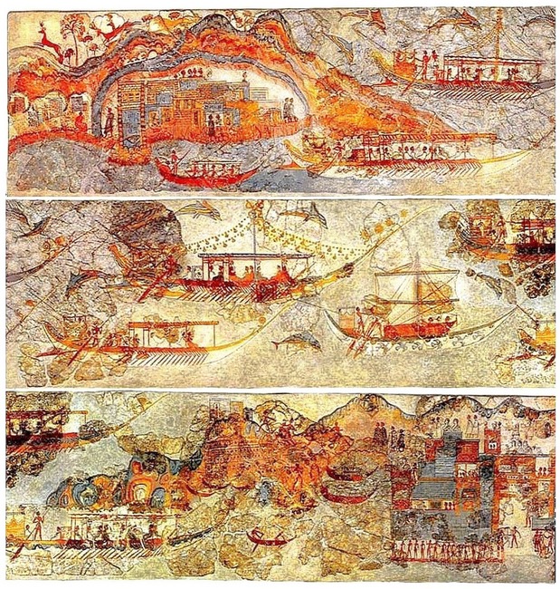 Ферейские фрески К тому же, как доказал на тихоокеанском материале этнолог Бронислав Малиновски, направление в Царство Мёртвых является указанием на прародину, туда, откуда мигранты пришли в местность их нынешнего обитания. Учитывая иберийское происхождение кикладских идолов и микенских толосов, а также «брачную экспедицию» в западную страну, изображённую на Ферейских фресках, можно утверждать, что мегалитический элемент в греческой культуре был весьма значительным.