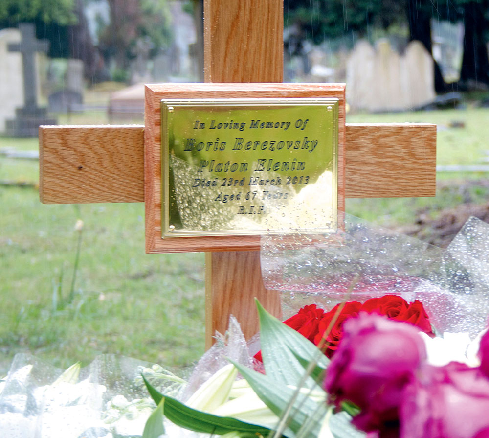 | На могильной табличке два имени: Борис Березовский и Платон Еленин — второе записано в его британском паспорте |