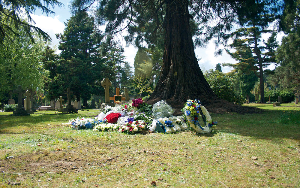 Место захоронения Бориса Березовского под огромной елью в глубине кладбища выбрали его дочери