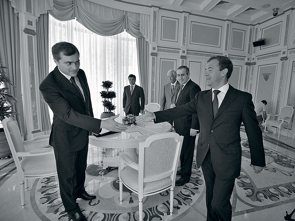 Не добавляли вице-премьеру уверенности в себе и трения с коллегами по Белому дому. «В команде правительства Сурков был чужеродным элементом, — полагает Дмитрий Орлов. — Если Наталья Тимакова и Аркадий Дворкович представляют собой содержательное единство, то Сурков был человеком внешним. Остатки конфликтности в отношениях с ним сохранялись еще с тех времен, когда он был заместителем главы администрации и конфликтовал с этими людьми, особенно с Натальей Тимаковой (пресс-секретарем Медведева)». Речь идет о том периоде, когда президентом был Дмитрий Медведев, а оставшийся работать в его администрации Сурков воспринимался многими как человек Путина, поставленный «приглядывать» за медведевскими кадрами.