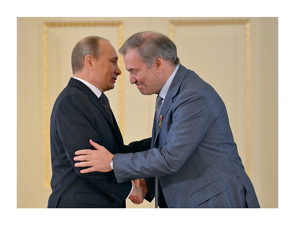Президент России Владимир Путин награждает дирижера Валерия Гергиева званием Герой Труда. 1 мая 2013 г.