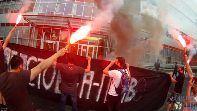 У московского офиса компании "Фольксваген" на улице Обручева в среду прошла акция солидарности с рабочими автомобилестроительного завода в Калуге. Как сообщает корреспондент "Граней", около 10 активистов левонационалистического движения "Народная воля" развернули баннер "Забастовка - право рабочих", зажгли файеры, бросили дымовую шашку. Активисты полминуты скандировали "Руки прочь от прав рабочих", "Рабочим винтовку, буржуям веревку" и другие лозунги. Никто из них не был задержан.
