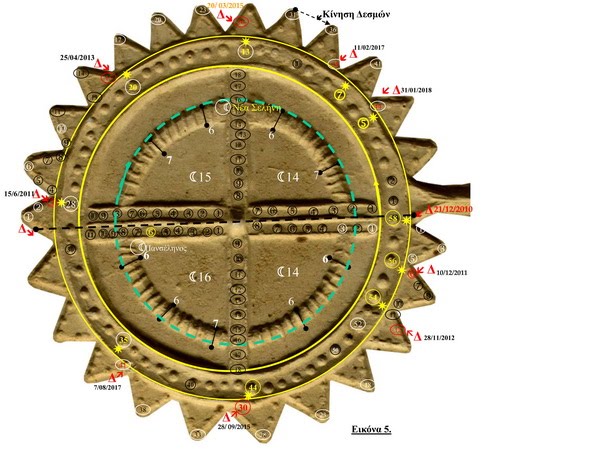 Минойский зубчатый диск Любопытно, что более простой механизм для предвычисления лунных и солнечных затмений в форме бронзового зубчатого диска был идентифицирован Минасом Цикрицисом среди артефактов, обнаруженных в 1898 г. в Палеокастро (1400 г. до н.э.). По мнению Цикрициса, минойцы могли определять время равноденствий и солнцестояний. Впрочем, отношение к исследованиям Цикрициса в научном мире неоднозначно: с одной стороны признается его открытие минойской верфи, с другой – его гипотезы относительно открытия минойцами Америки считаются спорными.
