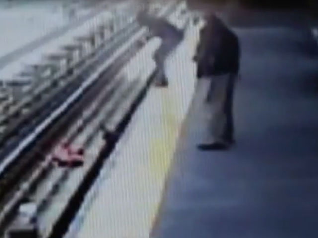 Невнимательная американка спасла дочь, упавшую вместе с коляской на рельсы (ВИДЕО)