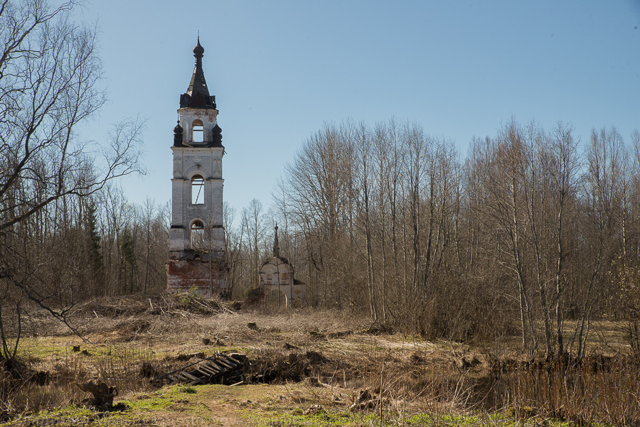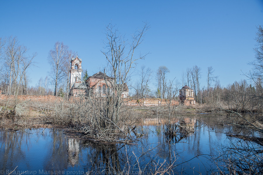 Это на другом берегу. Когда-то монастырь был окружен стеной и на другой берег был сделан крепкий мост. На фото вторая колокольня и еще одни въездные ворота - там совсем все заросло. Был пруд с карпами...