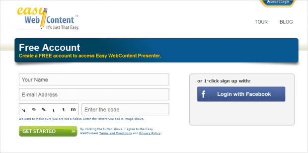 Easy Web Content Presenter представляет простой и легкий в использовании инструмент. Не имеет значения, являетесь ли вы профессионалом или начинающим создателем цифровых продуктов, все равно вы сможете использовать этот сервис. Для начала работы вы должны создать свой профиль, что является полностью бесплатной процедурой и занимает не более нескольких минут.