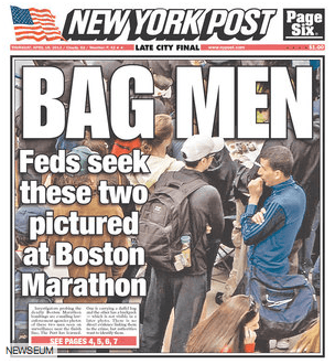 The New York Post также опубликовал недостоверную информацию о двух молодых людях с сумками, которые оказались простыми прохожими.