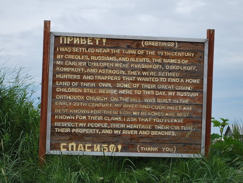 Деревня НинильчикВ первой половине XIX века русский язык часто звучал на Аляске. На нем говорили работники Российско-Американской компании, русские поселенцы («колониальные граждане»), потомки браков русских с местными женщинами (так называемые «креолы»). Порой отставные служащие Российско-Американской компании, по тем или иным причинам не хотели возвращаться в Россию. Они женились на местных женщинах и селились на Аляске.