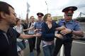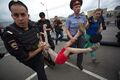 Днем в субботу у Госдумы и мэрии прошли массовые задержания участников акции в защиту прав ЛГБТ. Были задержаны около 30 ЛГБТ-активистов и несколько гомофобов, которые их избивали. У здания мэрии на Тверской полиция задержала заявителя "Московского гей-прайда" Николая Алексеева, а также журналистку Елена Костюченко с подругой Анной Анненковой, которые развернули радужный флаг с надписью "Любовь сильнее". Среди задержанных - девушка на костылях.