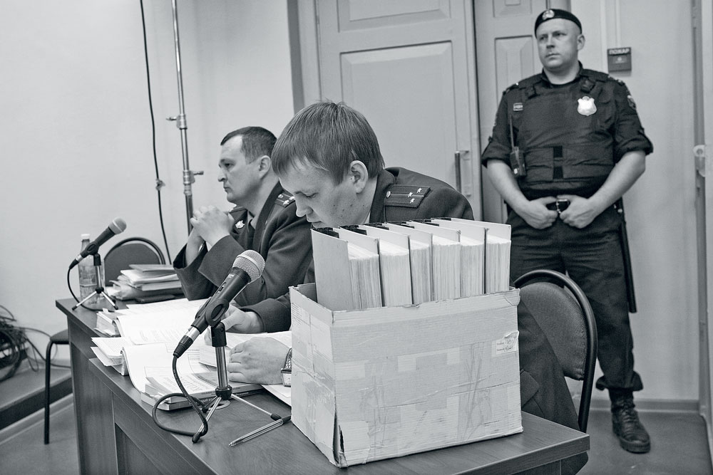 Сторона обвинения — прокуроры Сергей Богданов и Евгений Черемисинов пытаются доказать, что Навальный и Офицеров украли весь лес в Кировской области