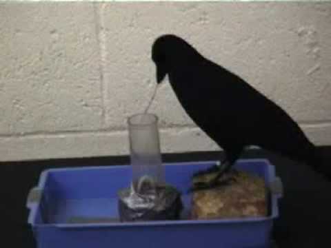 Выводы, сделанные людьми из случайных наблюдений за животными, должны впоследствии проверяться экспериментально. К античному историку Фукидиду восходит рассказ о вороне, который в пору засухи бросал камни в дупло, чтобы поднять уровень воды и суметь напиться. Также этот сюжет встречался в басне Эзопа «Ворона и кувшин», сочинениях Аристотеля и Френсиса Бекона и даже в сказках народов Поволжья. Были и свидетельства современных наблюдателей. Наконец, в 2009 году в журнале Current Biology появилась статья английских ученых Кристофера Бёрда и Натана Эмери, где это явление подтверждалось в лабораторном эксперименте. Исследователи поставили перед грачом узкий цилиндрический сосуд с водой, в которой плавало лакомство – червячок. Птица не могла достать до поверхности воды клювом. Но, используя положенные рядом с сосудом камни, она повысила уровень воды и дотянулась до червячка (видео).