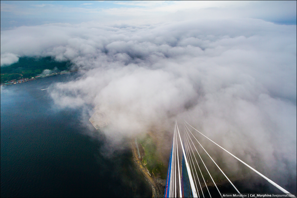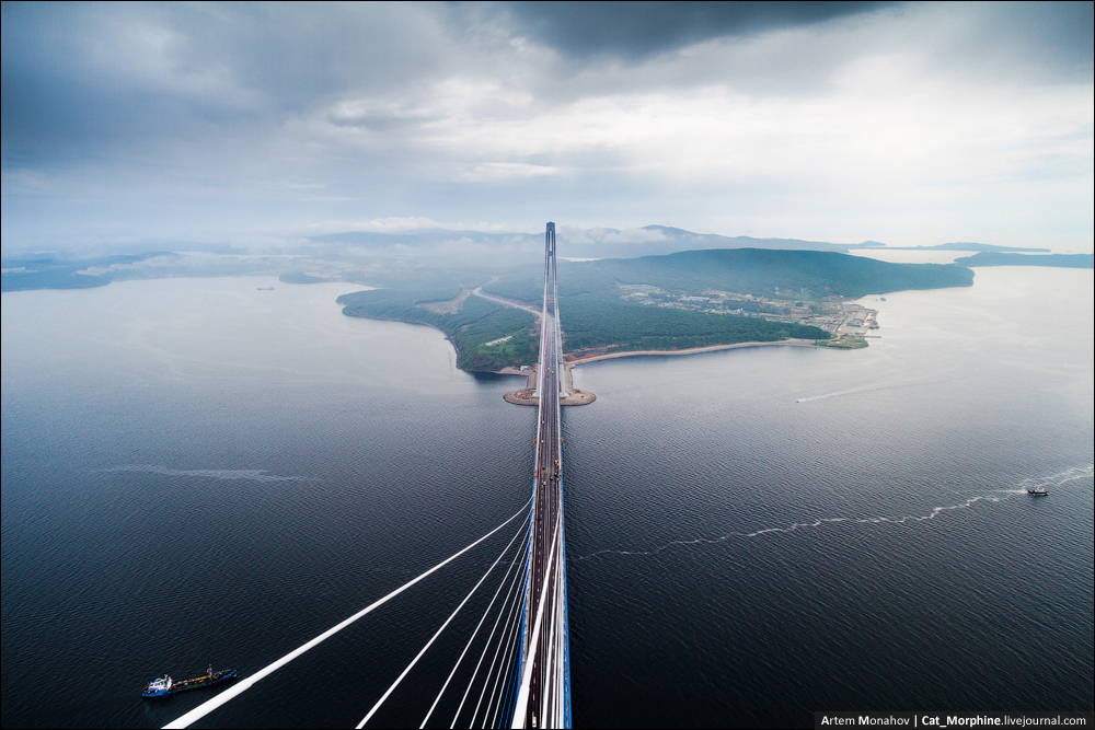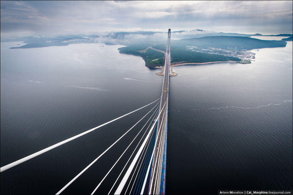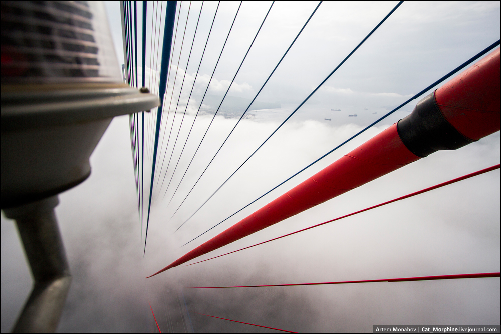 Во Владивостоке мы долго не могли попасть на мост через бухту Золотой Рог. Дважды мы приходили ночью к нему через весь город и уходили совершенно ни с чем. И вот последний съемочный день поездки, время ехать смотреть главную цель. Самый высокий в мире вантовый мост!