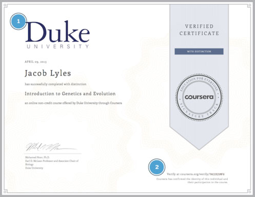 Третья проблема – это верификация. Подписываясь на любой бесплатный курсеровский курс, пользователь должен заявить о своем согласии с курсеровским «кодексом чести» - проще говоря, пообещать, что все задания он будет выполнять самостоятельно, а не просить кого-то сделать это за него. Понятно, что когда дело доходит до таких серьезных вещей, как сертификация, простое обещание мало кого убеждает. Опять же, если человек пришел учиться – это одно; если человек пришел получать сертификат – это уже немного другое. Чтобы добавить своим сертификатам убедительности, на Курсере создали дополнительную (платную) возможность – Signature Track. Стоит это удовольствие от 30 до 100 долларов за курс. За это по итогам курса студент получает не только признаваемый университетом сертификат, но и ссылку, подтверждающую подлинность этого сертификата через Курсеру. Помимо этого, студенту предоставляется полная отчетность по выполненным им заданиям и проектам. Эту отчетность можно предъявить работодателю.