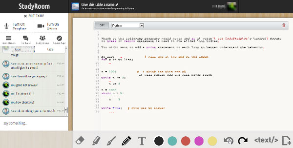 В ответ на возрастающую потребность устроить учебный класс непосредственно в интернете, появились самостоятельные сервисы, которые можно использовать как расширение МООКа – например, Getstudyroom. Каждый зарегистрированный пользователь может создать там аккаунт для того или иного курса со ссылкой на его исходную страницу, после чего там смогут собираться участники этого курса и совместно работать в маленьких учебных группах за разными «столами», каждый из которых оснащен чатом и интерактивной «доской», где можно писать, рисовать и обмениваться файлами.