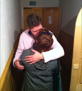 Алексей Козлов и Ольга Романова. Фото: Катя Смирнова Алексей себя прекрасно чувствует. Но чего ему быть сегодня особенно довольным, это решение принимал не Мосгорсуд, а Верховный суд 18 апреля. У нас это решение на руках, поэтому нам было все равно, что решат в Москве, потому что мы ходили уже в Верховный.