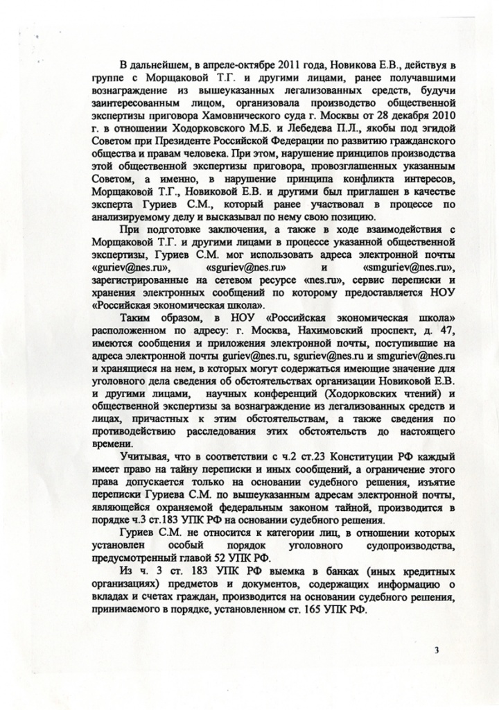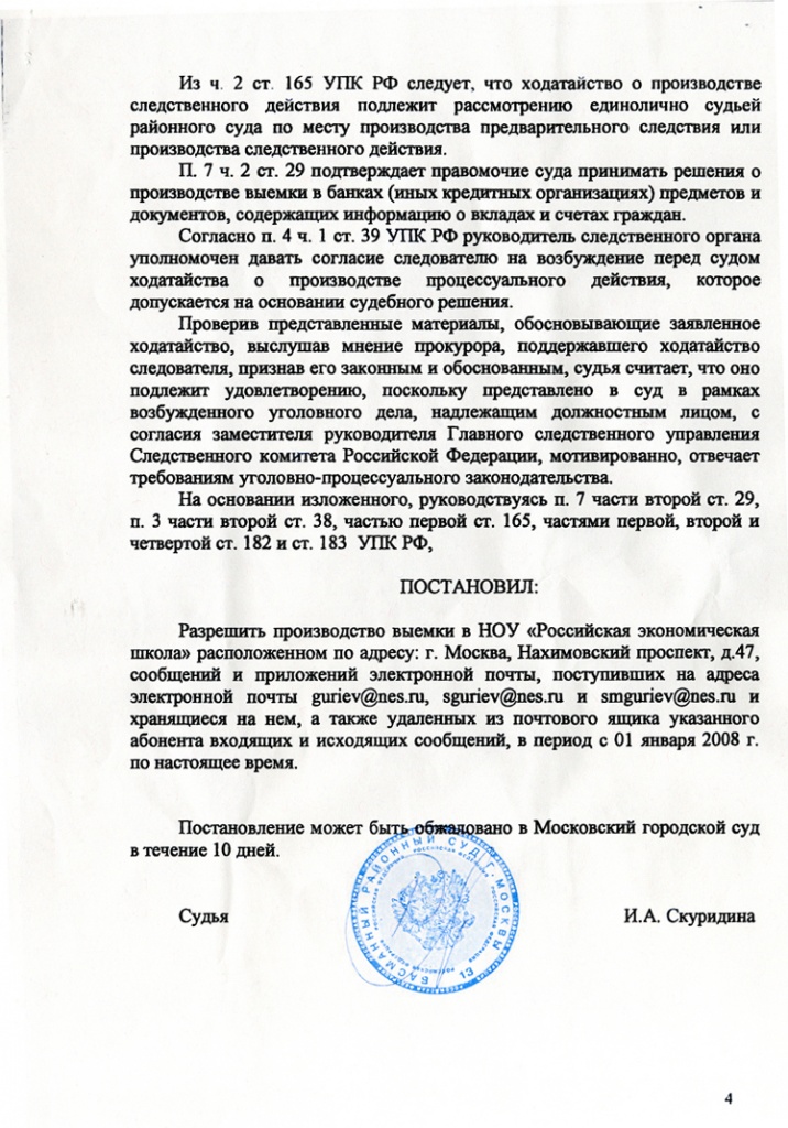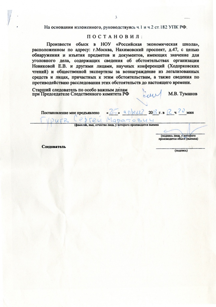 Протоколы о выемке переписки Сергея Гуриева и обыске в Российской экономической школе