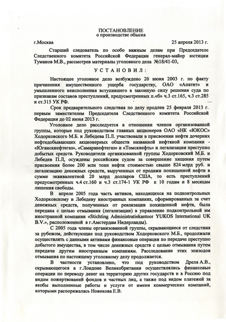 The New Times публикует документы, которые дают представление о том, что Следственный Комитет пытается предъявить Гуриеву: постановление о производстве обыска и постановление о разрешении производства выемки документов, содержащих информацию, составляющих тайну переписки. Найдите отличия