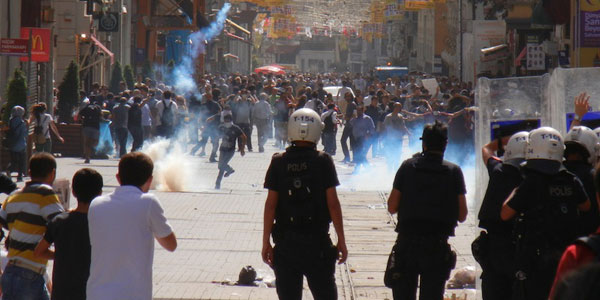 В инцидент вмешалась полиция, применив против демонстрантов слезоточивый газ и резиновые пули. Такая реакция правоохранительных органов многими местными правозащитными организациями была признана чрезмерной. Фотографии двух человек, раненных при разгоне митинга, быстро разошлись по социальным сетям и попали в СМИ. Максимального накала обстановка достигла в пятницу: во время очередного рейда в стан демонстрантов полицейские сожгли их палатки и применили силу в отношении нескольких десятков человек, оказавших сопротивление. К вечеру площадь Таксим и прилежащие улицы были заполнены народом.