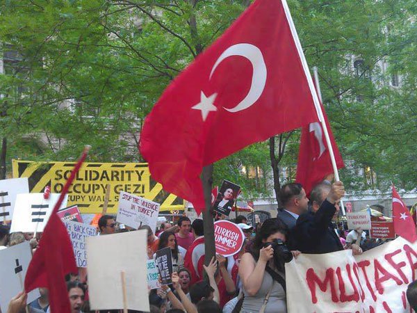 На площади Таксим собрались сторонники оппозиционной левоцентристской «Народно-республиканской партии», других политических движений левого толка, активисты ЛГБТ, анархисты, представители национальных меньшинств, в том числе греки, армяне и курды. На улицы вышли и простые горожане. Тогда и зазвучали лозунги об отставке премьер-министра Реджепа Эрдогана. Рассматривая причины массового недовольства, аналитики главной из них называют усталость от «стиля правления» премьера.