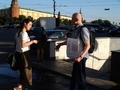 Перед началом заседания возле здания суда прошло несколько пикетов. Трое активистов, одетых в костюмы овощей, держали в руках плакаты с надписью "Требуем посадок". В течение дня перед зданием суда прошла серия одиночных пикетов в поддержку обвиняемых. При этом присутствовавшие у здания полицейские, по свидетельству очевидцев, штрафовали подходящих к пикетчикам людей за переход улицы в неположенном месте.