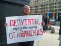 У здания Госдумы продолжаются одиночные пикеты противников гомофобии. Полиция не пытается препятствовать активистам.